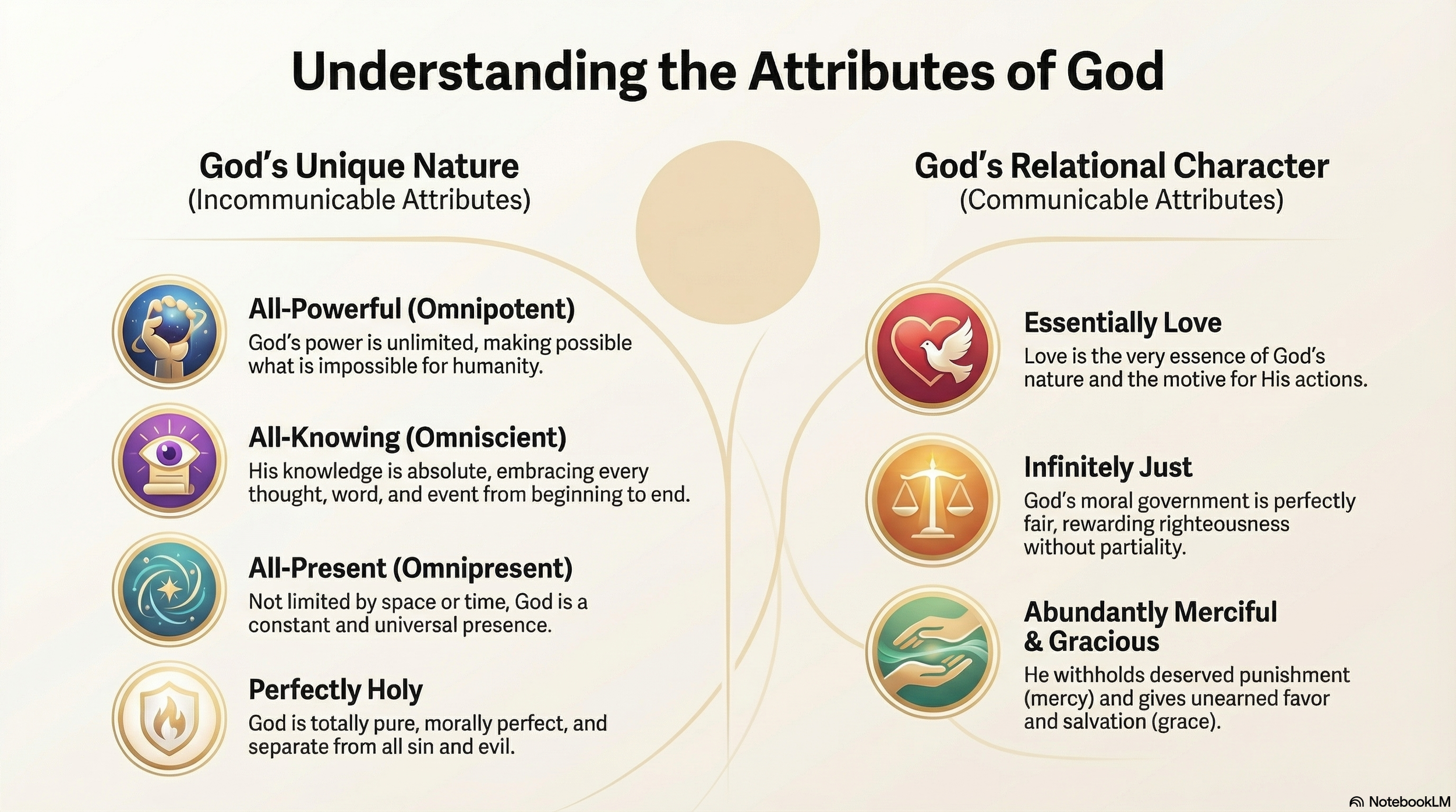 Embark on a transformative journey to discover the magnificent nature of our Creator, moving beyond surface-level assumptions to a scripturally grounded understanding of who God truly is. By examining His divine attributes—from His infinite power to His boundless mercy—you will uncover a source of unshakeable strength for your daily walk. This course bridges the gap between deep theology and practical living, equipping you to mirror His holiness in a world that desperately needs His light. Ultimately, you will solidify your faith, replacing uncertainty with the blessed assurance that the Almighty is intimately involved in your life.