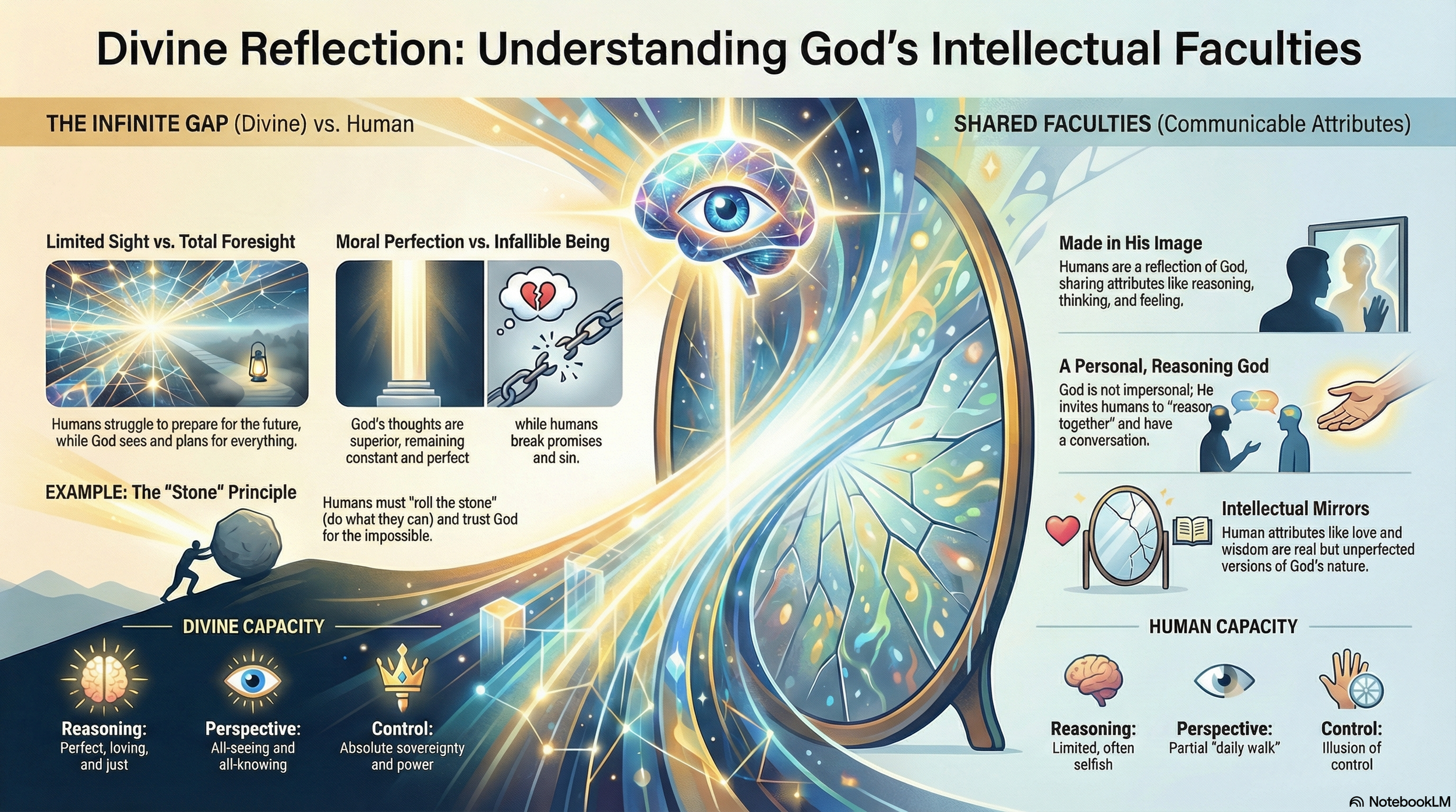 In this session, we transition to a deep study of God's communicable attributes, specifically His intellectual faculties, which He has graciously shared with humanity. We explore the profound truth that while we are made in His image, our reasoning and knowledge are but a shadow of His perfect, infinite wisdom. By examining scriptures such as Isaiah 43 and 55, we see a God who does not remain distant but actively invites us to reason with Him and seek His higher ways. You will be challenged to identify how sin and free will have hindered your intellectual walk and how to surrender your limited understanding to His divine foreknowledge. Practical application is at the heart of our study; we don't just learn about His mercy—we learn to extend it as He does. Join us as we strive to live with excellence by aligning our thoughts with the Almighty's.
