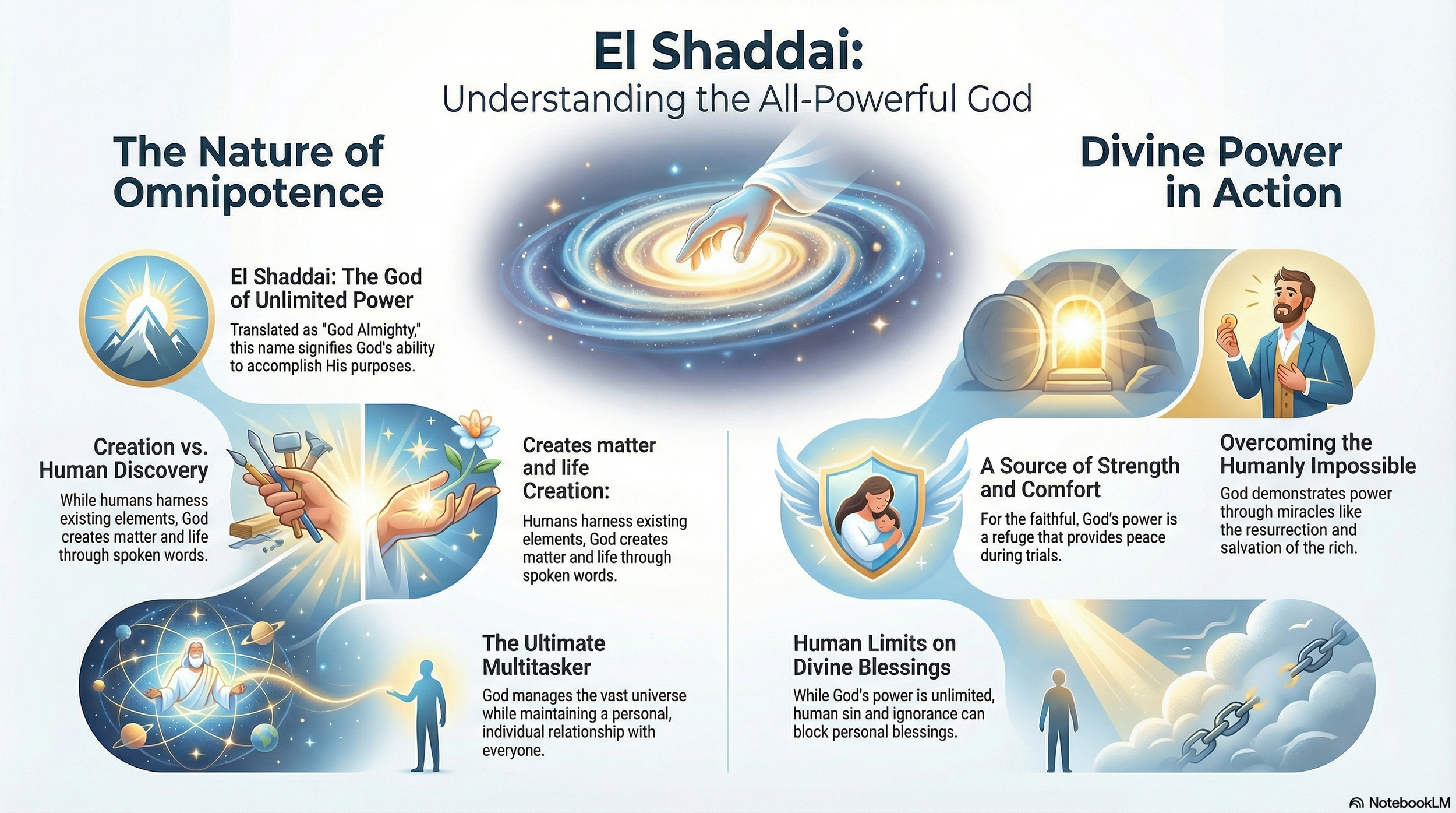 This lesson dives into the attribute of God’s Omnipotence, exploring what it truly means to worship "El Shaddai," the Almighty God. We move from the foundational truth of His creative power in Genesis to the ultimate triumph of His reign in Revelation. You will learn that God’s unlimited power is not just a theological concept but a practical source of daily strength and comfort for His children. By understanding His authority, we can stop depending on our limited strength and start "letting go and letting God" lead our lives. We challenge you to examine whether your current walk reflects a trust in His sovereignty or a self-reliance. Join us as we grow from the "milk" of basic belief into the "meat" of absolute surrender to the One for whom nothing is impossible.