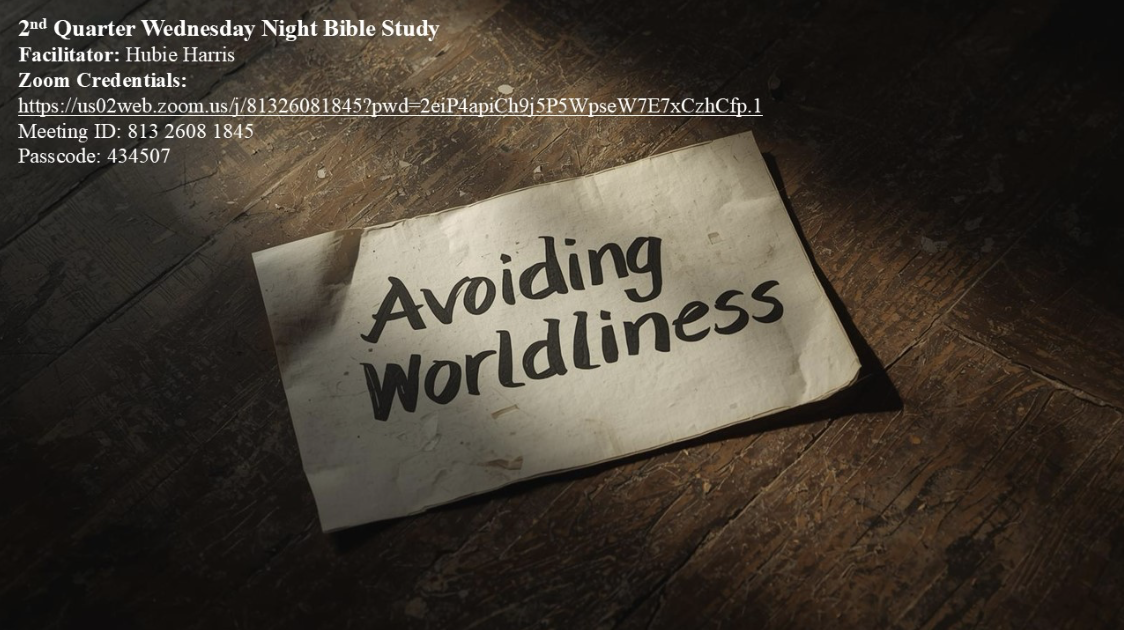 April 1, 2026, Schrader Lane Adult Zoom Bible Study. This lesson serves as an introduction and overview of the upcoming lessons of, “Avoiding Worldliness.”