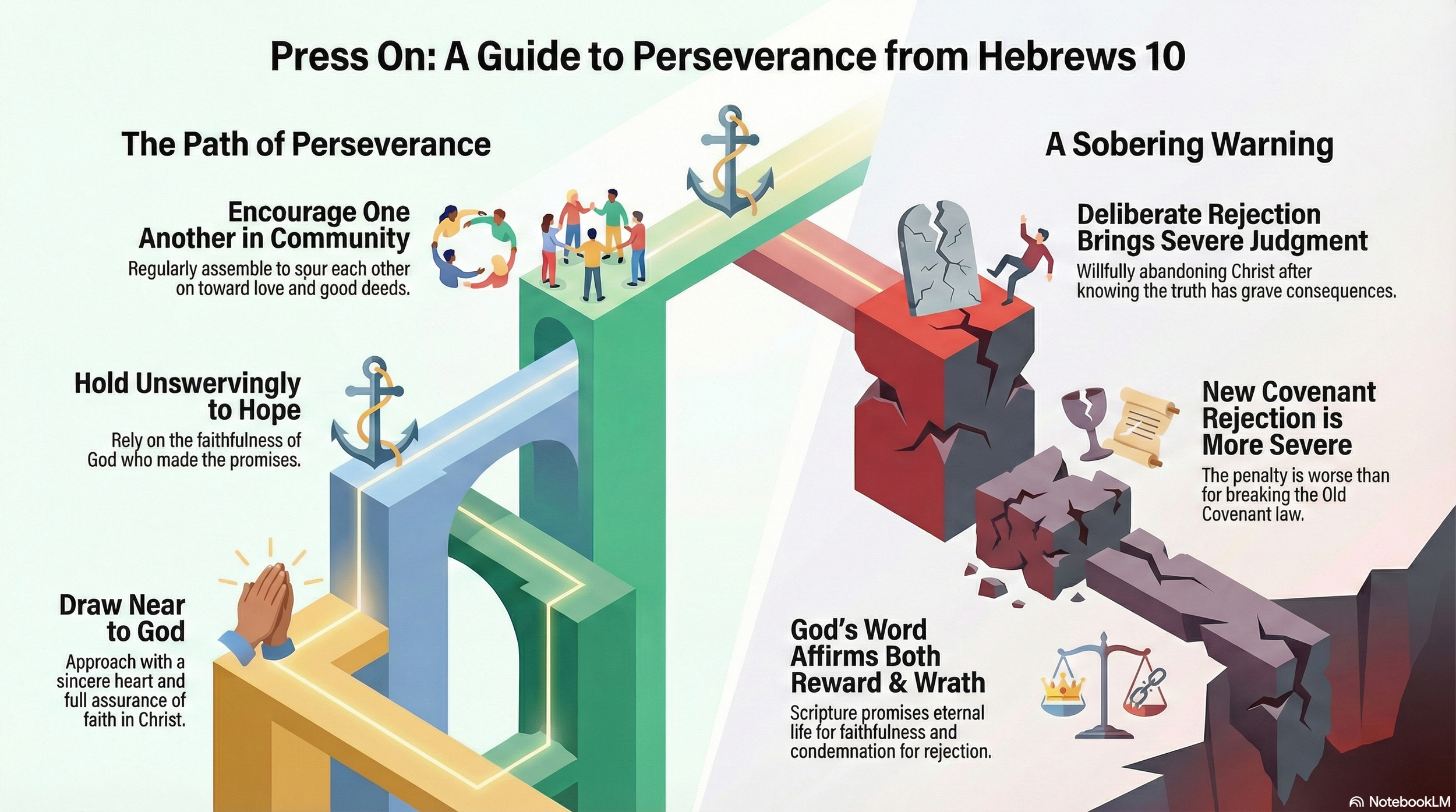 In this pivotal study of Hebrews 10:19–39, we transition from deep theological truths to an urgent practical call to persevere. We examine the "new and living way" opened by Jesus, giving us the confidence to draw near to God with full assurance. However, the text also issues a severe warning against willful sin and apostasy, reminding us that rejecting the truth carries grave consequences. To combat spiritual drift, we are commanded not to forsake the assembly but to spur one another on toward love and good deeds. As the Day approaches, our mutual encouragement becomes the lifeline that sustains our faith in a hostile world. Join us as we explore how to hold unswervingly to our hope, knowing that He who promised is faithful.